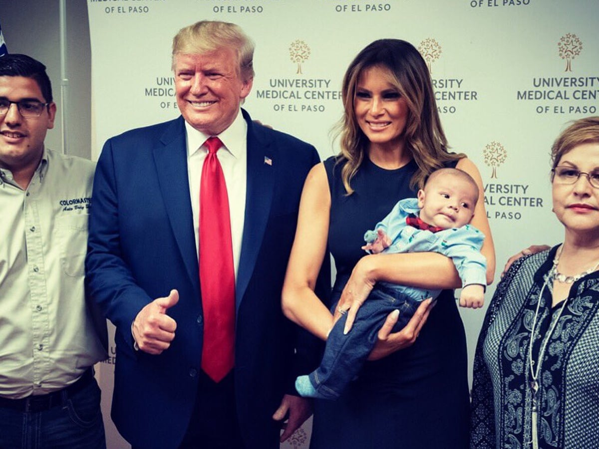 Jag tänker på Trump. Som 2019 poserade med en bebis vars föräldrar dött beskyddande den mot masskytten i El Paso. Med ett flin och tummen upp.